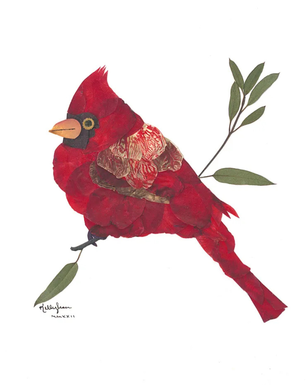 Prints of original works of art created using only pressed flowers and botanicals. This one of a kind print was created using camellia, rose, coleus, and eucalyptus.