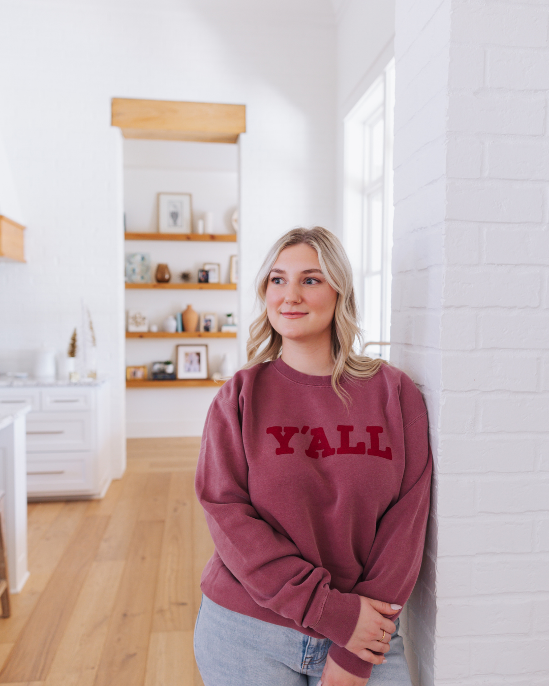 This festive sweatshirt brings a little Southern charm to your holiday wardrobe. With its cheerful 'Y'all' design front and center, it’s the perfect mix of comfort and holiday cheer. Whether you're Christmas tree shopping, or sipping cocoa by the fire this sweatshirt keeps your spirits bright and your heart full.