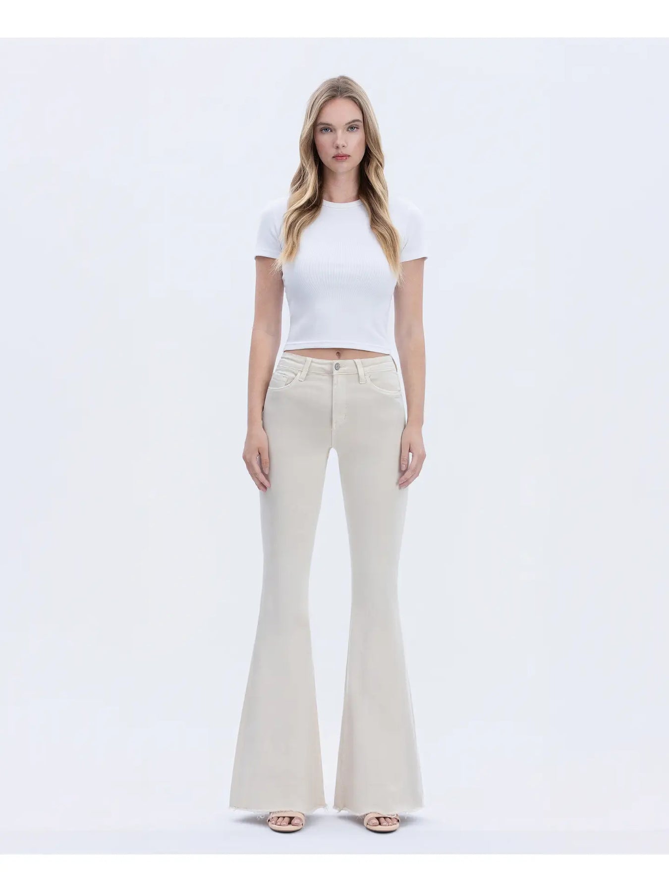 Make a statement with the VERVET Highrise Super Flare Jean. Made from comfort stretch denim, these jeans feature a flattering high-rise waist and a dramatic super flare with a raw hem