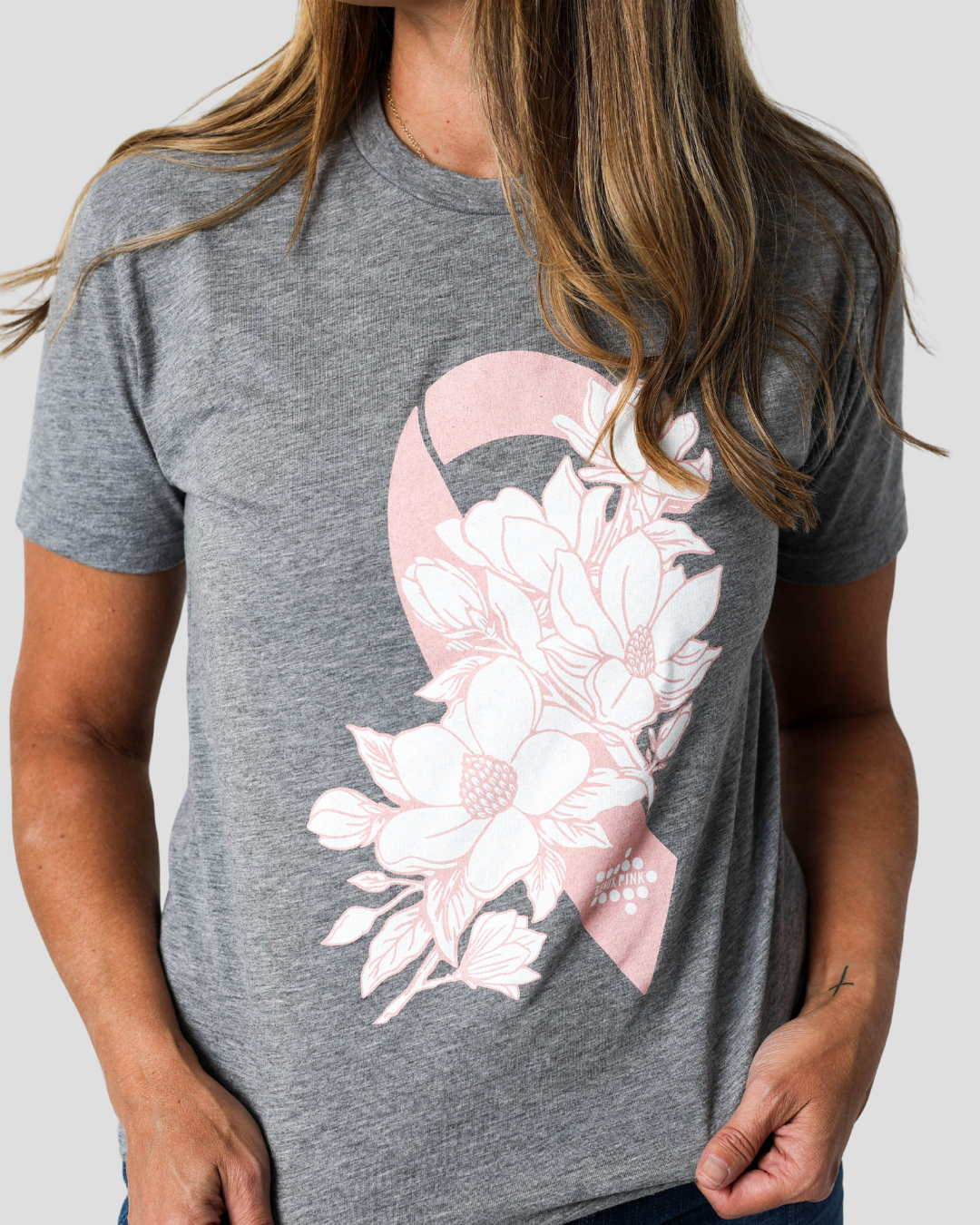 This years Geaux Pink design 'Magnolias of Hope' designed by Megan Nolan an illustrator and designer based in New Orleans who specializes in hand-drawn artwork.