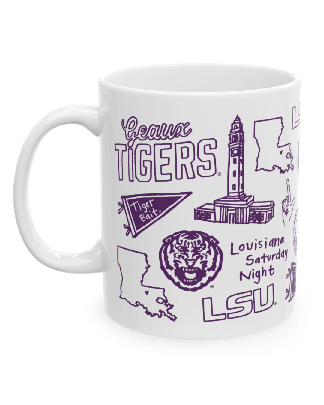 Show off your Tiger pride with this officially licensed Louisiana State University, elegant 11 oz. porcelain mug, perfect for enjoying your favorite hot beverages. Crafted with high-quality porcelain, this mug combines durability with a sleek design, featuring the official Louisiana State University logo and memorable campus landmarks.