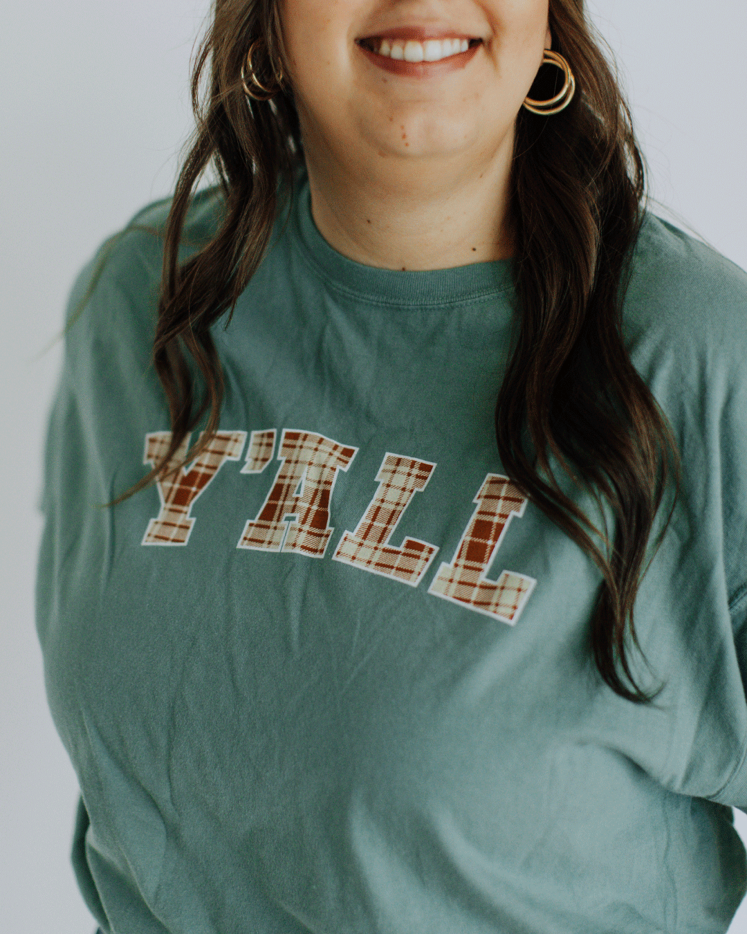 Represent your southern roots with our custom Y'all Fall Plaid Short Sleeve Shirt. The fall plaid writing creates a unique and fashionable bonus!