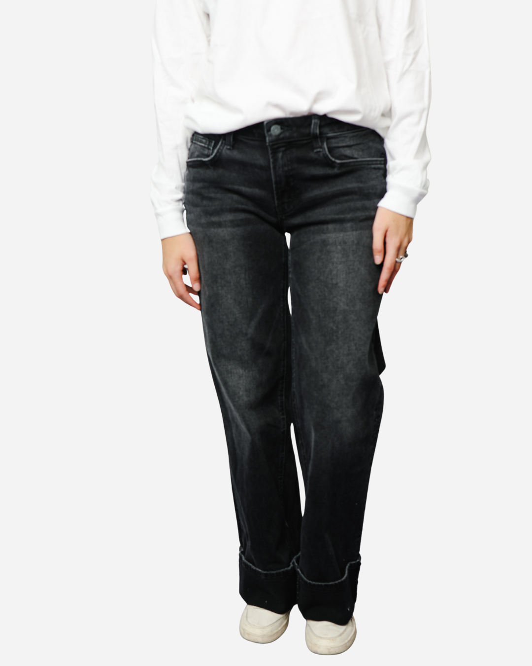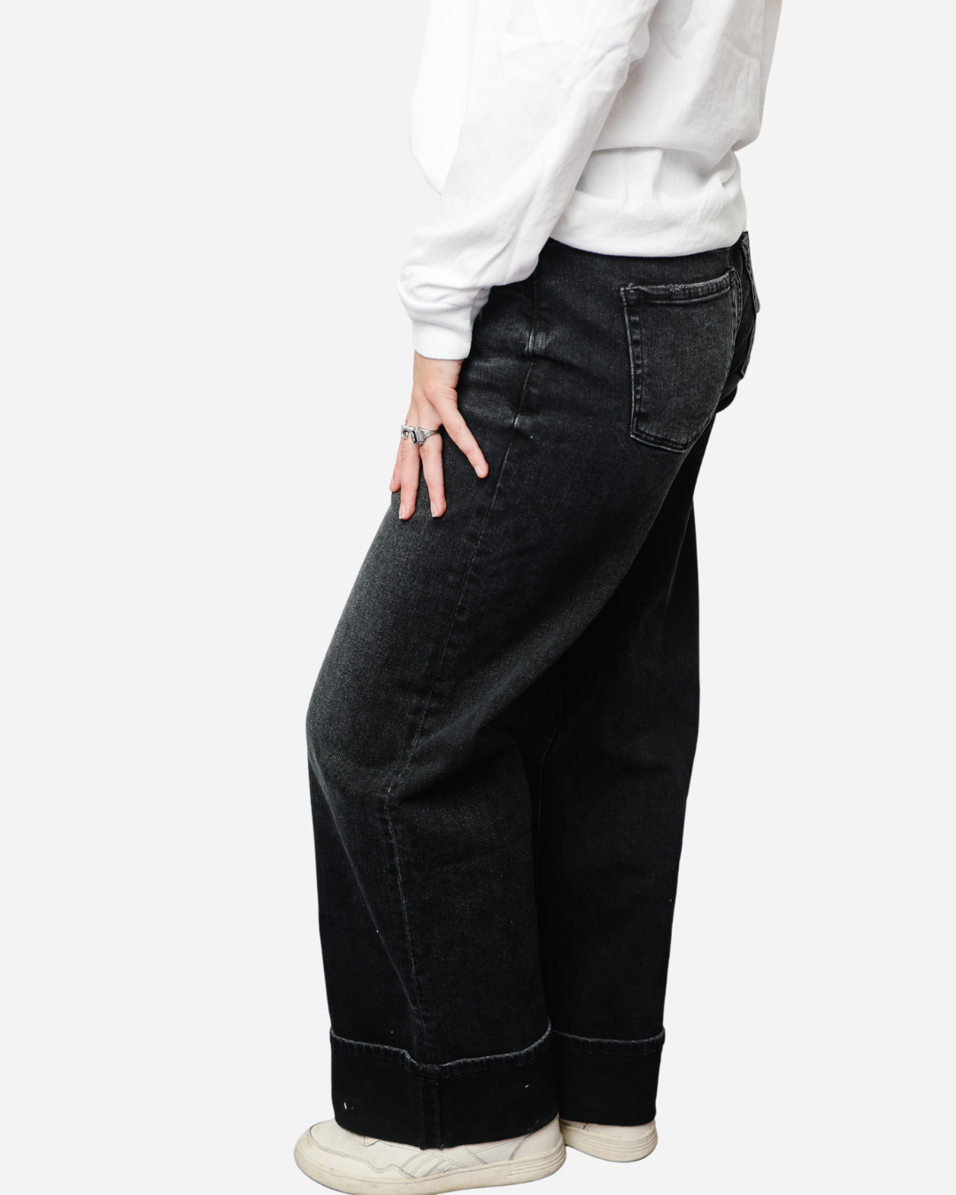 VERVET Black Low Rise Cuffed Baggy Wide Jeans