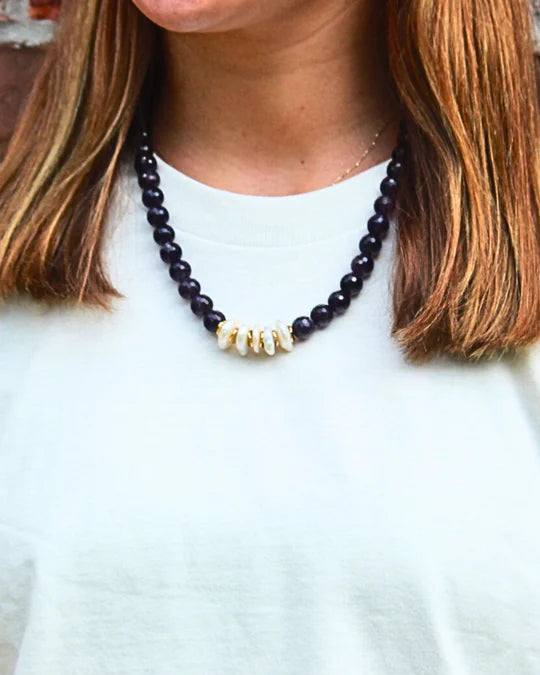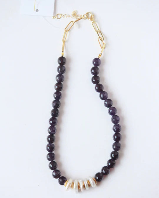 Elevate your look with this stunning necklace featuring natural gemstones accented by lustrous freshwater pearls. Designed as a statement piece, it blends timeless elegance with modern style—perfect for special occasions or elevating everyday wear. Measuring 20" with a 2" extender, this necklace offers versatile length options and a comfortable, medium-weight feel—substantial enough to make a statement without being overwhelming.