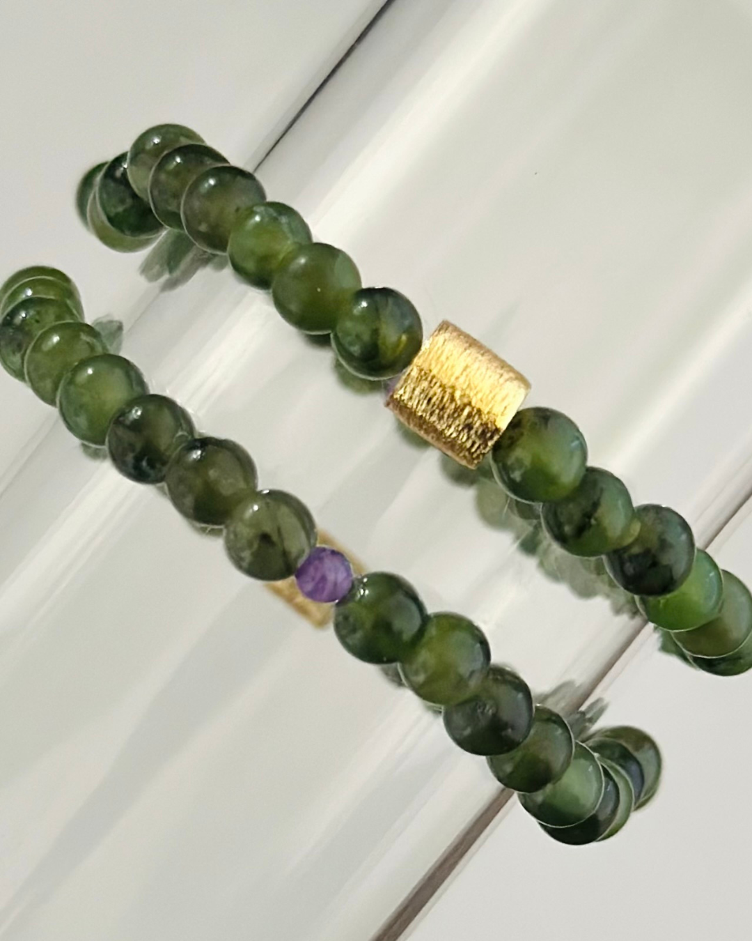 The name says it all! You will look gorgeous in this green bracelet featuring a gold-plated center bead for just the right amount of pop!