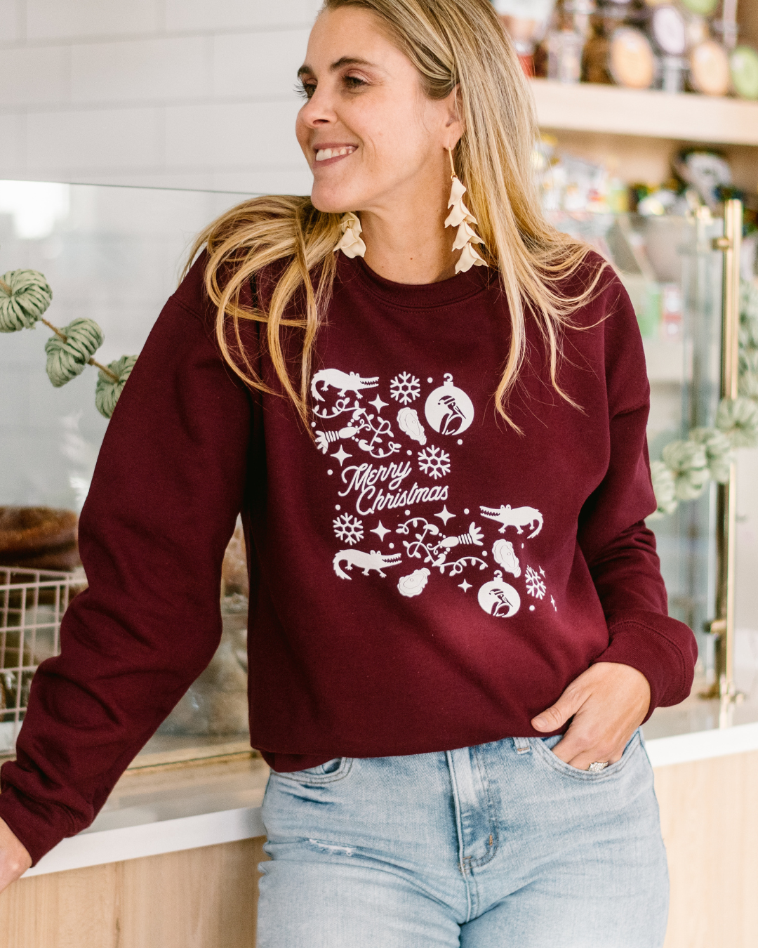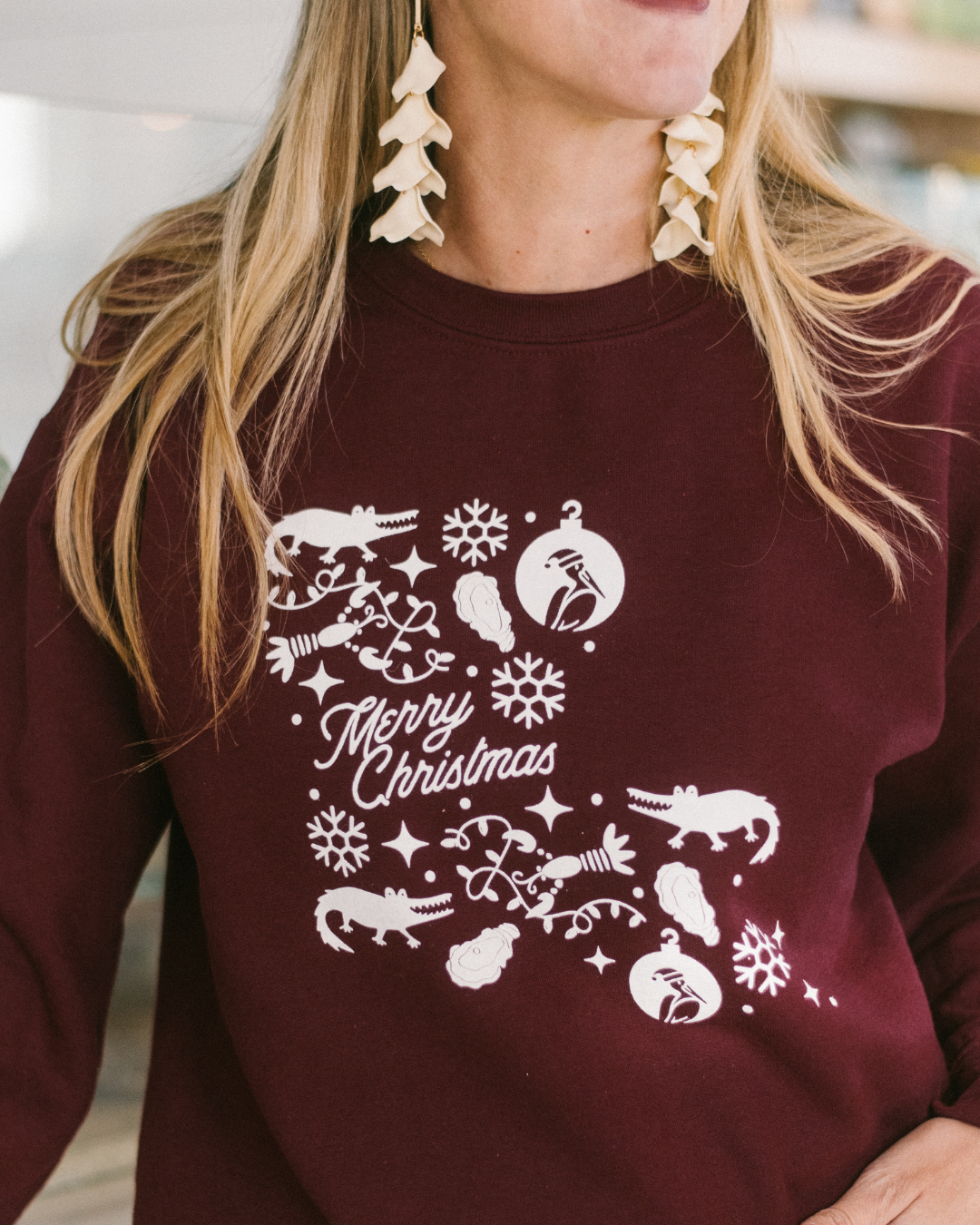 This Louisiana-themed maroon sweatshirt is the perfect way to spread the Christmas cheer – and stay warm! Add a little bit of festive color to your winter look with this cozy crewneck.